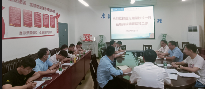 为深入贯彻落实习近平新时代中国特色社会主义思想和党的二十大精神,全面贯彻党中央关于在全党大兴调查研究的重大部署,6月1日下午,党委委员、副校长魏克湘深入bv1946伟德国际始于英国教学一线教师中开展调研。科技处黄中华处长等一起参加调研,邓永和、陈桥、田智鲲等学院负责人和教师出席调研活动。