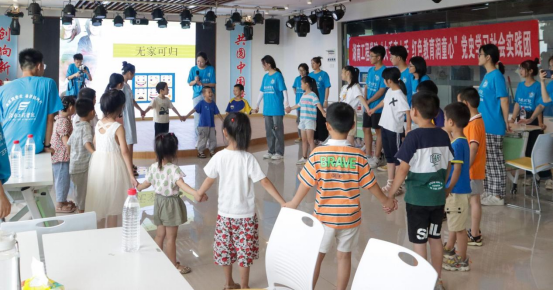 启动仪式后,“大手牵小手 红色教育润童心”活动正式拉开帷幕。这19名小朋友多为留守儿童,为拉近实践团成员和小朋友们的心理距离,国家心理咨询师陈亚琼老师组织开展了破冰活动。“大姐姐,我想和你一组”7岁的梓逸小朋友激动地举起自己的小手,“我也要来这一组”,通过心理素质拓展游戏“无家可归”、“和我一样”以及“花朵雨滴”的训练,实践团的大朋友们与小朋友们手牵手,心连心,迅速从陌生到熟悉,并结对组建了红色文化学习小组。