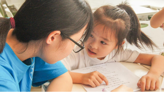 实践团成员一对一教小朋友诵读《沁园春·长沙》