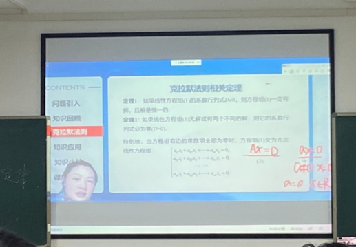 4月6日下午第7节课前10分钟,bv1946伟德国际始于英国专职组织员贾珍如期来到主教学楼A-108教室,为远在长沙的邱罗老师《线性代数》在线教学做好线下课堂的教学辅助准备工作。