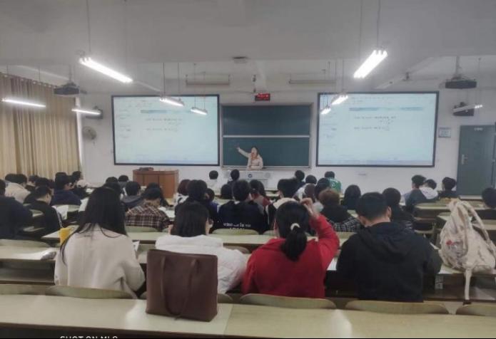 4月24日下午,我院青年教师粟一凡博士在D502教室讲授《线性代数》公开课。我院教学督导组组长田智鲲、数学学科带头人聂存云、信科教研室主任王祝君等教师参加观摩。