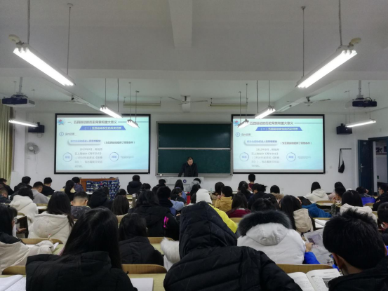 颜卫人对五四运动的历史背景、重大意义、五四精神的核心内涵及其时代价值四个方面的内容进行了详细的讲述,并介绍了五四运动时期发生的历史故事,以及当时的时代背景和五四运动后人们的物质生活和精神文明的变化。“伟大的精神蕴含伟大的力量,它可以穿透历史的迷雾而熠熠生辉,可以契合新的时代价值而历久弥新。”颜卫人指出尽管时过境迁、物转星移,五四精神穿越100年的岁月,时至今日仍保持着青春活力、具有独特的时代价值。最后,颜卫人用习近平总书记所说的“新时代下中国青年要继续发扬五四精神,以实现中华民族伟大复兴为已任,不辜负党的期望、人民期待、民族重托,不辜负我们这个伟大时代”,号召大学生们弘扬五四精神,勇担民族复兴大任。