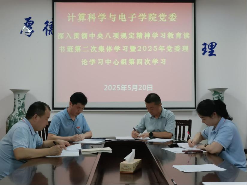 5月20日下午,在教学楼G207会议室,我院举行深入贯彻中央八项规定精神学习教育读书班第二次集体学习暨2025年党委理论学习中心组第四次学习。院长陈桥主持学习,院党委理论学习中心组成员、教工党支部书参加学习。