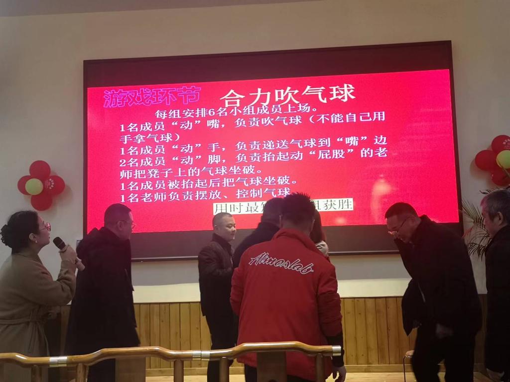 现场除了精彩纷呈的节目,还穿插组织了趣味十足的《合力吹气球》、《你划我猜》等游戏和抽奖。老师们兴致勃勃,踊跃参加。游戏中,台上老师充分发挥团队合作精神,默契配合,台下观众为小组成员加油助兴,现场气氛活跃,笑点不断。