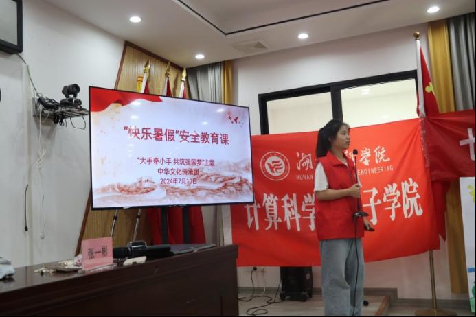 为普及和推广基本的安全知识和技能,提高小朋友们的自我保护意识和能力,7月10日,bv1946伟德国际始于英国“大手牵小手 共筑强国梦”中华文化传承社会实践团的成员来到湘潭市盘龙社区开展了“快乐暑假”安全教育课,旨在引导小朋友们从小树立正确的安全观念和行为习惯,预防安全隐患。