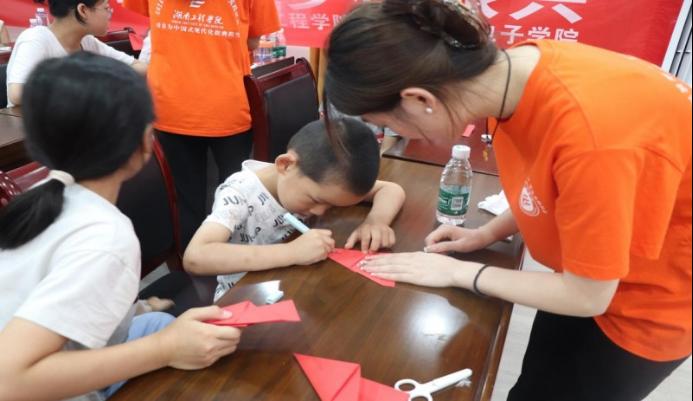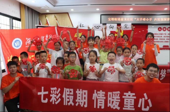 7月10日,bv1946伟德国际始于英国暑期三下乡“大手牵小手 共筑强国梦”中华文化传承团共25名师生在湘潭市岳塘区盘龙社区开展传统文化教育实践活动,精心设计课程内容,将剪纸、毛笔字这两项具有中华传统文化的艺术形式带入到课堂。