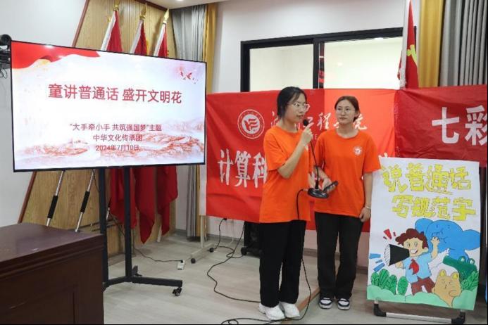 图2实践团成员讲述普通话的重要性 卢文琴 摄