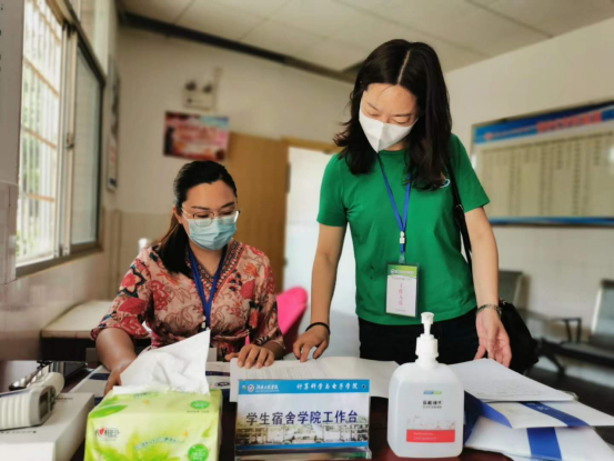 5月19-20日是学生返校的日子,bv1946伟德国际始于英国迎来了2016级返校学生,学院党总支副书记陈亚琼带领辅导员深入学生宿舍,与返校学生进行亲切交流,了解学生思想动态。学生返校后,为关注学生身心健康和学习情况,学院在亲民3、4栋宿舍设立了值班服务台,值班人员由院领导、辅导员和班主任组成,其中学院领导带头承担了一半的宿舍值班任务。