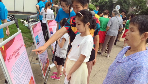 在每个社区宣讲现场,都能看见志愿者们设立的“流动党史馆”宣传长廊。在东方红广场,居民围绕在展板面前了解红色故事,及习近平新时代中国特色社会主义思想的有关内容,现场居民纷纷为志愿者豪情壮志的宣讲热烈鼓掌。在桥湾社区,志愿者们热心给居民和孩子讲解“流动党史馆”中的内容;在宝塔社区,志愿者们组织社区居民及青少年举办了“我和我的祖国”演讲比赛;在盘龙社区,志愿者们给社区青少年举办了“红色故事”演讲比赛,在社区设置了“物理小实验”、“红色故事馆”、“庆祝祖国70周年”祝福墙以及“红色知识”抢答比赛等环节。