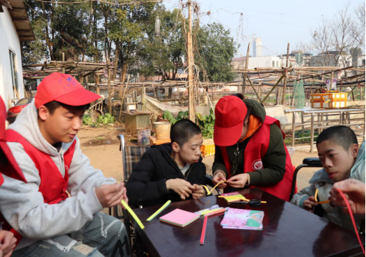 做康复治疗,志愿者们还陪同他们一起在病房里同病魔勇敢地作斗争。