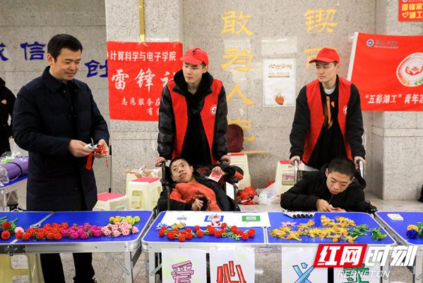 除了体验大学生活,兄弟俩还将自己做的“蜻蜓”“小狗”“草莓”“中国结”“玫瑰花”等手工串珠作品带到了校园,参加雷锋社的爱心义卖活动。“你们的手工做得很精致,可以教教我们吗?”听到大学生们的称赞,兄弟俩笑容很灿烂。