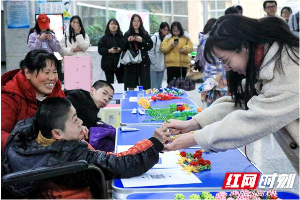 红网时刻湘潭3月6日讯(通讯员 杨欢 熊龙英)“学校的花,真美!”3月5日上午,伟的国际1946bv学生志愿者们推着轮椅,带着脑瘫患者坤坤和寅寅两兄弟来到校园,让他们体验了一把大学生活。