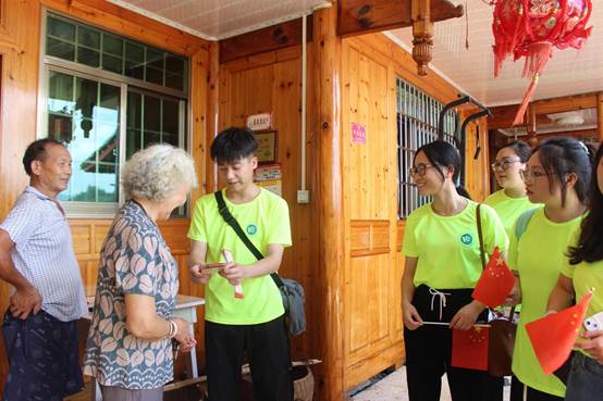 图为实践团成员向村民分发红色故事宣讲手册。文泷 摄