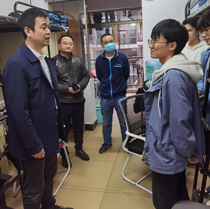 走访过程中,张小刚一行检查了学生宿舍的内务卫生情况以及寝室用电情况,详细询问了同学们的学习、生活情况以及未来规划,鼓励同学们好好学习专业知识和技能,提升未来职业竞争力。张小刚希望同学们劳逸结合,在学习之余,加强锻炼,增强身体素质,同时注意健康饮食,增强自我管理意识,营造和谐文明、勤学上进的宿舍氛围。张小刚殷切叮嘱同学们遇到困难和困惑时,及时向辅导员、院领导反映。