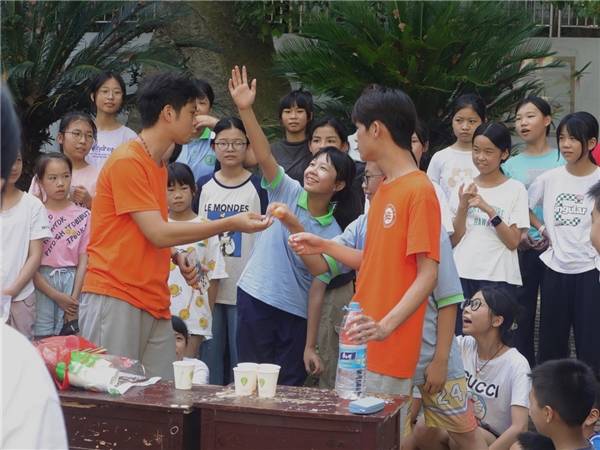 为进一步加强青少年儿童的心理健康教育,促进他们心理健康成长,树立自信心,实践团成员们开展了“解忧杂货课”心理课、“乐跑一夏”趣味运动会、“一起跳舞吧”歌舞会等心理主题活动。同学们在实践团成员的带领下,从羞涩到放飞自我,从不敢上讲台到最后的敞开心扉,一点一滴的变化都是一次又一次的成长。“我上第一堂课的时候,班上的同学们几乎都不会举手回答问题,从而我发现了他们对于自己很不自信。在之后的课堂中,我会点名回答问题,然后表扬每一位敢于站起来的同学。在我上最后一堂课的时候,课堂变得非常活跃,我一提出问题就会有同学站起来抢答。通过每一天的进步,到最后,他们突破了自己,打开了自己。我觉得帮助农村儿童建立自信,就是此次‘七彩假期’最大的意义。”实践团成员黄朝阳说道。