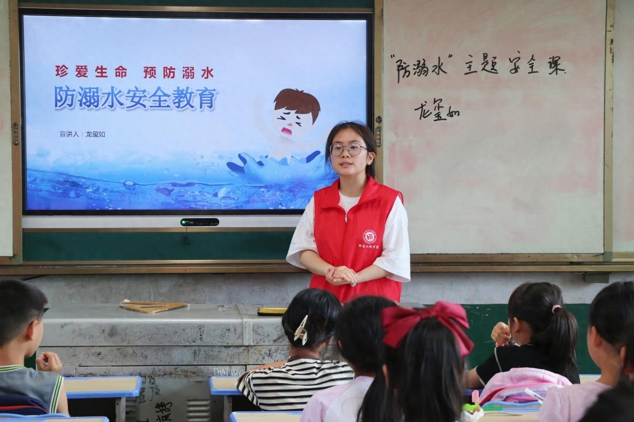 图为实践团成员对中路铺中学的学生进行防溺水主题教育。李韩辉 摄