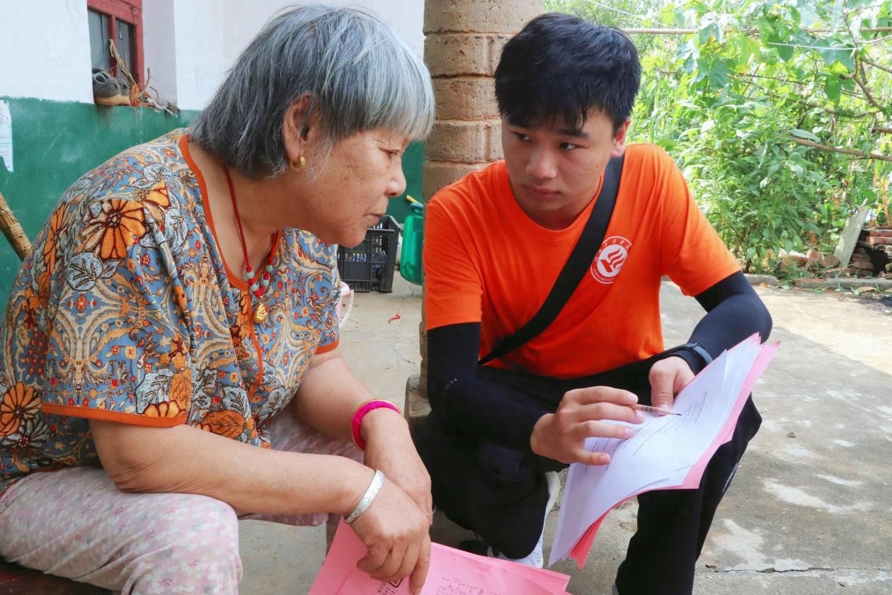 图为实践团成员向中路铺镇的居民宣传安全知识。龚艳星 摄