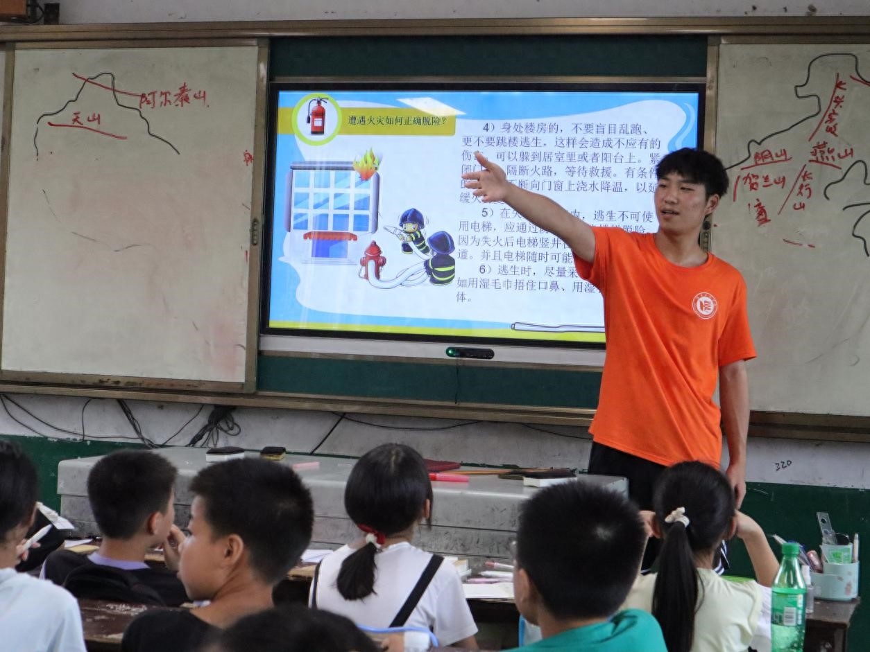 图为实践团成员上消防安全主题课。龚艳星 摄