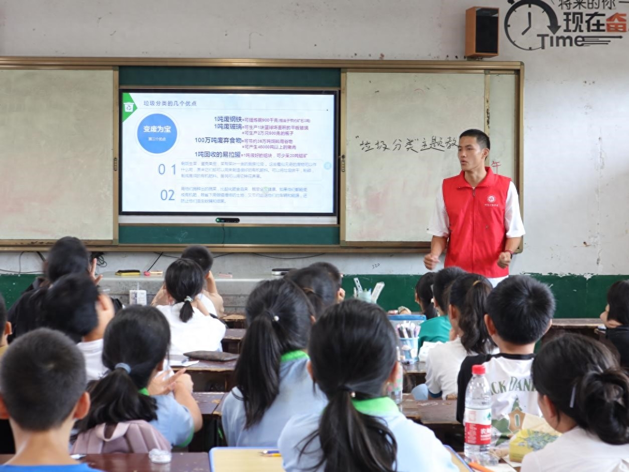 图为实践团成员进行垃圾分类相关知识的讲述。李韩辉 摄