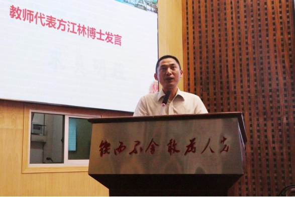 2024届毕业班班主任方江林作为教师代表发言。他强调了梦想和坚持的重要性,引导学生潜心提高学习本领,努力追逐梦想,成就更高质量的人生。
