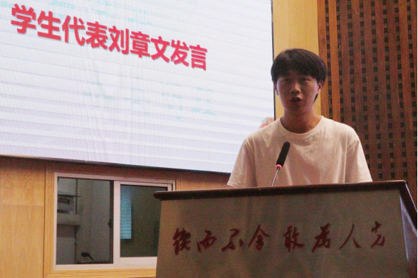 考研学生代表信科2002班刘章文进行经验分享。发言中,他表达了对学院与老师的感激之情,同时,他向学弟学妹们重点介绍了学好数学的经验方法,分享了自己的考研心得,引导学弟学妹坚定信心、奋勇前行,赢来人生的高光时刻。