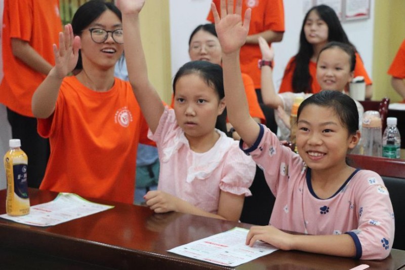 “大哥哥,大姐姐,这个是读平舌音还是翘舌音呀?”小朋友们在课堂上全情投入,积极地学习普通话。实践团成员通过开设“红色诗韵”趣味诗歌课堂、“红星闪耀”音乐课堂、“心随墨舞”书法课程、“心里有个天平”普法教育等语言课程以及“绕口令”、“你问我答”、“听音复述”等多样化语言游戏,因材施教、寓教于乐,多维度推广普通话,让小朋友们在欢声笑语中感受普通话的魅力。