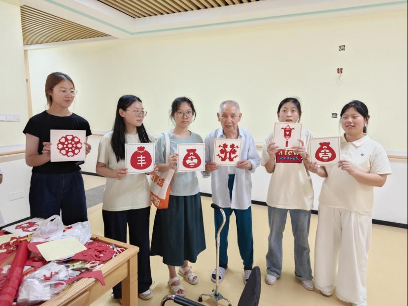 活动中,志愿者围坐在老人身边,倾听老人讲述年轻时的故事,并向他们分享校园趣事,温馨的对话拉近了两代人的距离。志愿者手把手教老人折叠红纸、绘制图案,制作出一幅幅承载对长者美好祝福的剪纸作品。养老院负责人表示:“学生们不仅带来欢乐,更让老人们感受到社会关怀,这样的实践教育对青年成长也很有意义。”