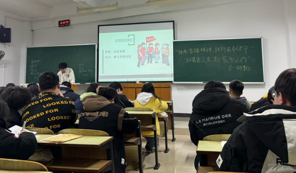 谭宇龙以同辈视角切入,围绕雷锋精神的核心内涵与时代价值展开分享。他结合雷锋同志的经典事迹,以及身边同学践行雷锋精神的志愿服务案例,从“甘于奉献的精神底色”“锐意进取的奋斗姿态”“爱岗敬业的责任担当”三个方面,生动阐释了新时代青年如何传承和发扬雷锋精神。作为学生代表,他还分享了自己参与社区科技帮扶、校园文明建设等志愿活动的经历与感悟,鼓励同学们立足专业所长,将雷锋精神融入日常学习生活。课堂上,同学们认真聆听、积极思考,现场氛围热烈浓厚。