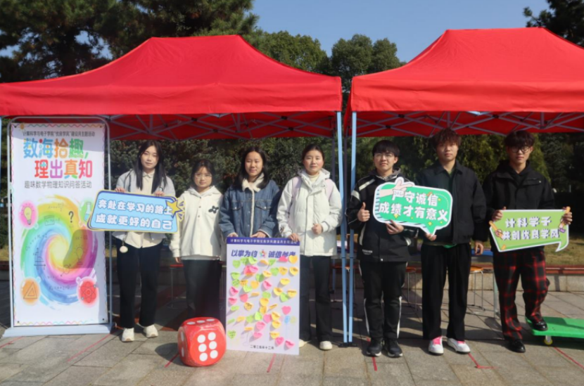 为激发学子对数学、物理学科的探索热情,锤炼科学素养与团队协作能力,12月25日,我院于知行广场成功举办优良学风建设月系列活动之数理知识趣味问答。全院学子踊跃参与,现场互动频繁,气氛热烈高涨。