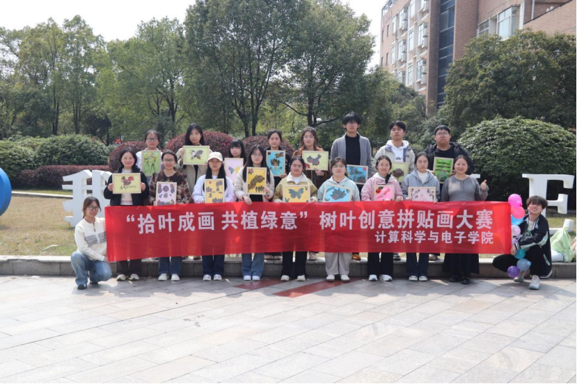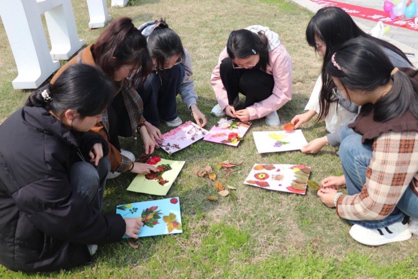 活动现场春意盎然,同学们以自然落叶为素材,发挥奇思妙想,将形态各异的树叶精心剪裁、巧妙拼贴、细心点缀,创作出生动有趣的拼贴画。大家或独立构思,或分工协作,用一片片树叶组合成小动物、风景图案、创意标识等作品,将自然之美与青春创意融为一体,在动手实践中感受草木生机、体会创作乐趣。