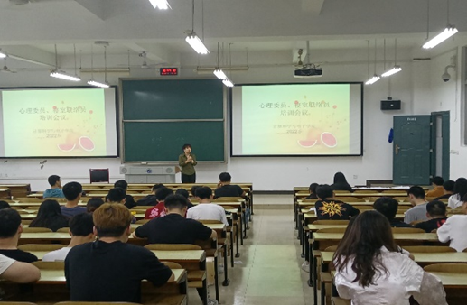 张利芝老师在培训会上列举了大学生常见的几种心理问题与心理疾病,阐述了大学生的心理健康应当受到重视,强调了心理委员、寝室联络员在班级心理工作的重要性。张利芝要求心理委员和寝室联络员作为班级学生和老师之间的“纽带”,应当及时地反映班级学生们的心理健康状况。
