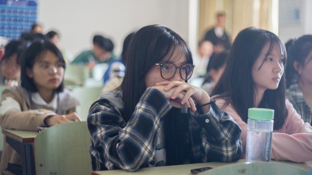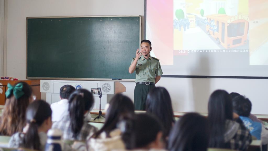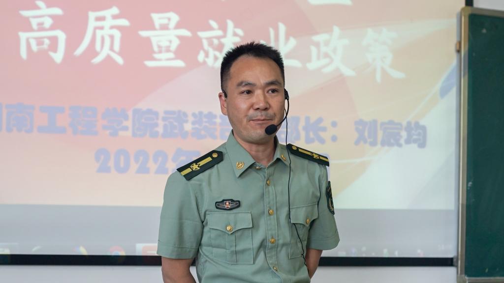 刘宸均向同学们展示了当前我国航天科技、军事技术和国防力量等方面的突出成就。随后,引入“大学生高质量就业是什么,与我有什么关系,我要如何实现呢?”“人生的价值到底是什么,我要如何去体现?”“我到底能给国家和社会做些什么?”三个问题,让同学们带着问题边听边思考。他向同学们讲述了当代优秀大学生入伍以后在部队的发展情况,并着重介绍了我校入伍毕业生的优秀事迹,在讲解优秀事迹的过程中,穿插着国家对大学毕业生入伍的政策,引人入胜,让同学们有了深刻的印象。