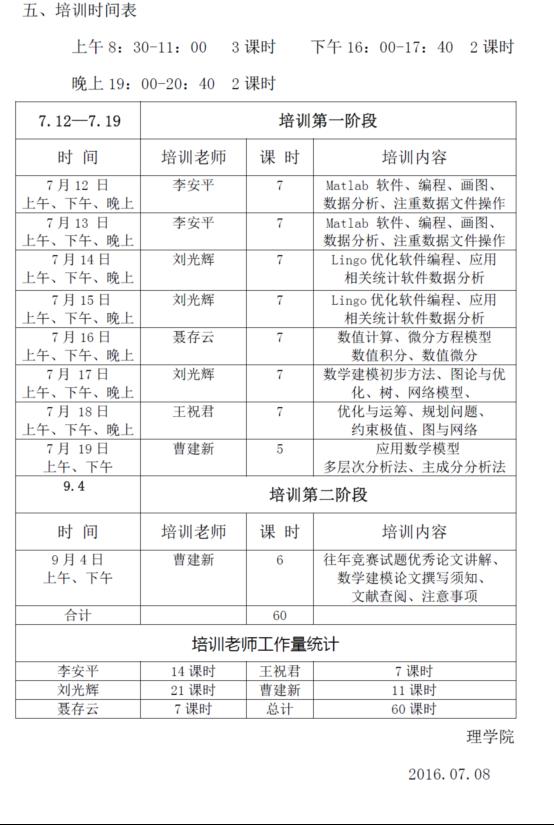 2、在各类培训开始前,培训负责人必须向学科竞赛办公室和分管学科竞赛院领导提交培训大纲和计划(含安排表)的电子稿和纸质稿各1份(模板参见附件1),经审核同意后方可执行培训任务,否则学院不予认可,一律不计算工作量。培训教师需认真撰写培训教案。培训期间,教师必须按时到规定地点授课,不准迟到早退。培训结束后,培训负责人需要撰写培训总结。