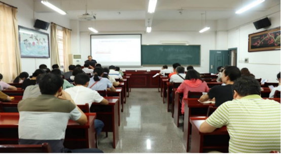 2019年9月24日下午,bv1946伟德国际始于英国在F205会议室举行“新时代、新中国、新湖南——庆祝中华人民共和国成立70周年”主题讲座,学院党总支书记颜卫人为主讲人,学院全体教职工参加了此次讲座。