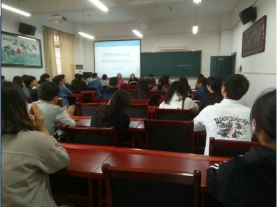活动伊始,邓永和做动员致辞,他表示,学院考研基地成立来之不易,在学院办公用房紧张的情况下挤出房间来满足考研学生的需求,学院会尽全力帮助考研同学解决难题,给予专业选择、面试及专业调剂等问题上的指导,并表达了他对同学们的殷切期待,希望同学们能尽快端正态度,明确目标,用信心,恒心,决心和平常心来积极面对考研,祝愿大家都能取得自己想要的成绩。随后,蒋淑亚为同学们宣读了理学院考研基地的管理制度及使用规定,并介绍了考研学生的房间配备情况。最后,陈亚琼以往届学生的考研经历来激励大家,使同学们明确了考研目标,树立了信心。