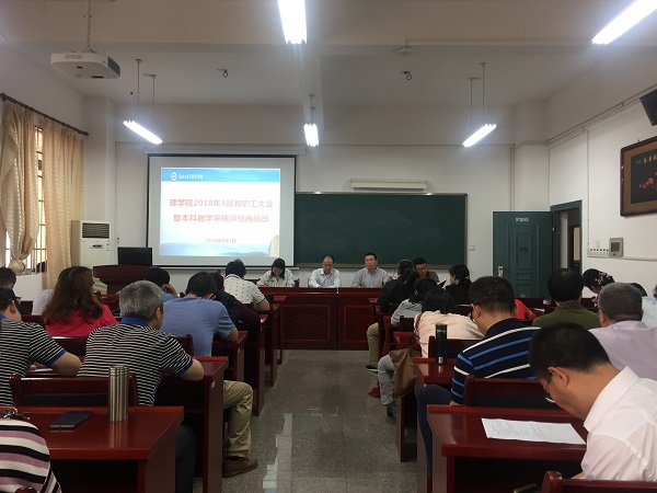 为扎实推进“本科教学工作审核评估”相关工作,理学院2018年4月的第一周召开了党政联席会、全体教职工会议、教研室主任会、班主任会议、班干部会议等一系列会议,全面部署学院审核评估工作事宜。