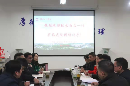 会上,易兵校长一行认真听取了计算电子学院和外国语学院关于实验室建设的需求和建议。在实验室建设方面时,易兵校长详细询问了计算电子学院实验室的建设需求,提出要统筹规划,细化方案,明确专业人才培养目标推进实验室的建设和管理。与会的相关部门负责人就学院提出的有关问题和意见进行了详细解答与回应。
