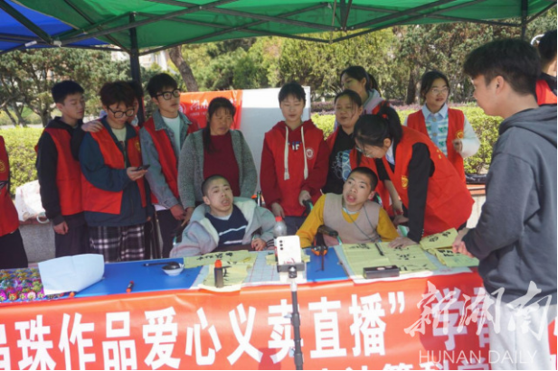 “很想体验一下做网络主播的生活是什么样,我们想通过视频和直播传递更多正能量。”两兄弟的妈妈郭利群说,由于身体原因,两兄弟对互联网、电商、直播不了解。为了帮助他们完成这个梦想,“雷锋社”志愿者师生在学院大力支持下,搭建电商直播平台、注册电商小店、布置场地、爱心义卖、教手工串珠、书法、折纸……