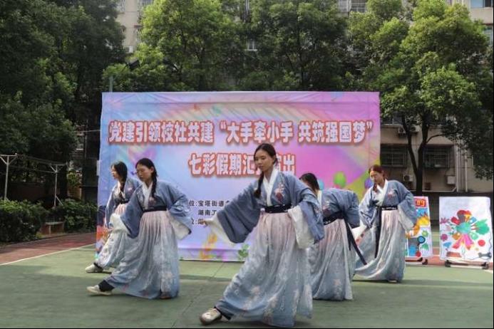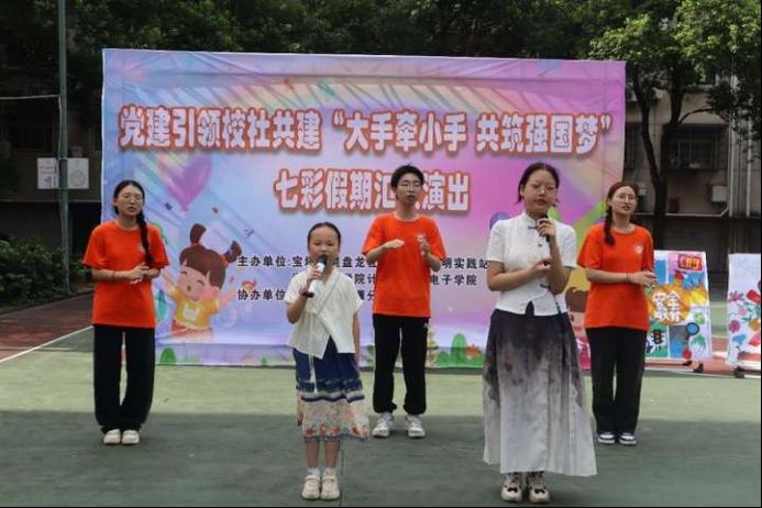 (朱巧玲 杨俐)7月12日上午,bv1946伟德国际始于英国“大手牵小手 共筑强国梦”中华文化传承社会实践团联合盘龙社区在社区开展党建引领校社共建“大手牵小手 共筑强国梦”七彩假期汇报演出。