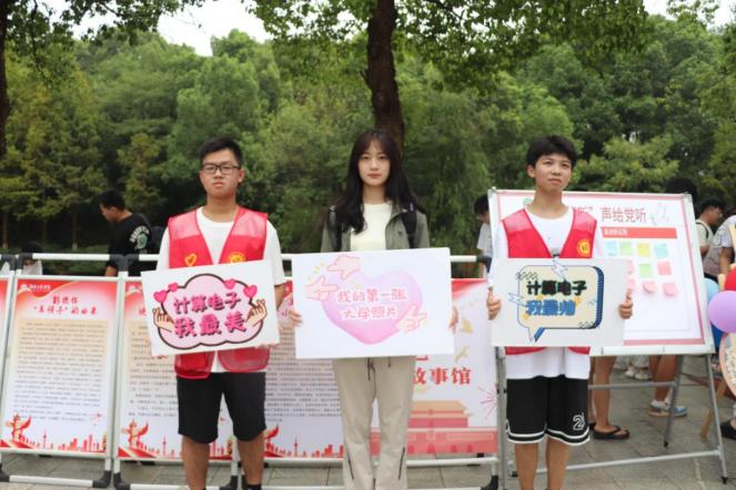 “计算电子学院在这里...”由学院师生组成的志愿者队伍热情地在校门口吆喝道,与每一名新生打招呼。他们在校园里不停穿梭、各处忙碌、搬运行李、引导报到流程...暖心的服务让新生感受到家的温暖。“来,看这里,笑一笑。”随着相机快门的按下,一张张灿烂的笑脸在那一瞬间被定格,这是属于新生的大学第一张照片,更是新生开启大学生活的珍贵见证。24级新生顿易鑫看到刚拍出来的照片,激动地说:“没想到大学里会收到这样一份特别的礼物,这让我对大学生活充满了期待。”