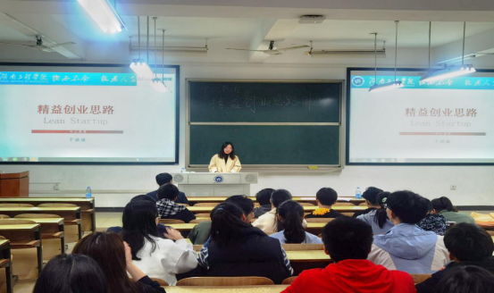 于游波老师根据自己多年来积累的经验和丰富的阅历,从爆品策略、精益创业方法论、跨越鸿沟、敏捷方法等方面给学生讲解及分析了许多有关创业方面的实际操作案例。同时提出精益创业五项基本原则,分别是从自我导向到用户导向、从计划导向到行动导向、从理性预测到科学试错、从系统思维到单点突破、从完美主义到高速迭代,并强调了创业思维的重要性。讲座最后,于游波老师寄语在场同学:希望同学们扩大知识面,提升专业技能,注重兴趣培养;希望同学们注意把自己的所学专业和社会需求相结合起来,注重实践技能的提升。