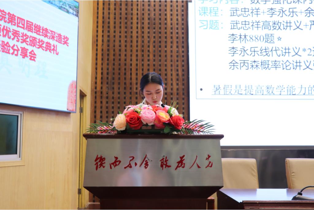 院长邓永和宣读《关于表彰第四届继续深造奖、英语四六级单项优秀奖的决定》文件