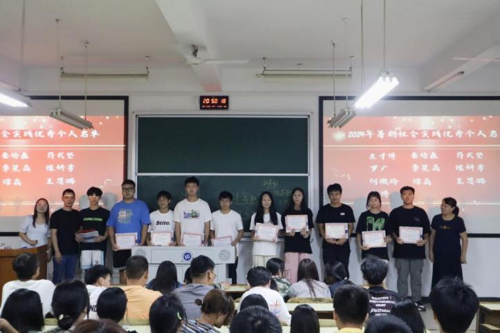 聂存云宣读了信息与计算科学专业2024年大学生暑期“三下乡”社会实践优秀个人的表彰名单,并为获奖代表颁发证书和奖品。